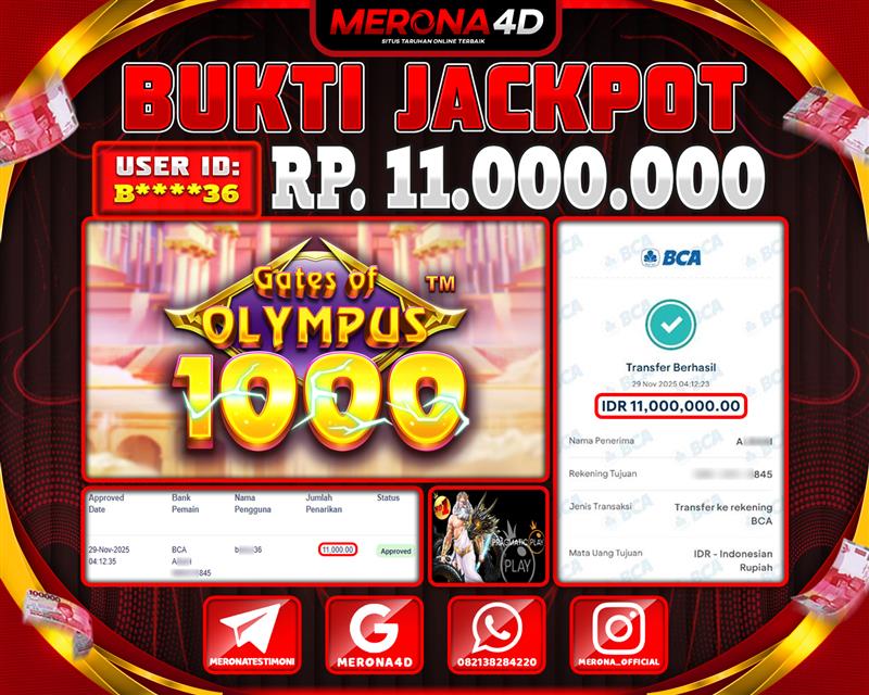 Selamat Kepada Member MERONA4D B*****36 Telah Jackpot Di GATES OF OLYMPUS 1000