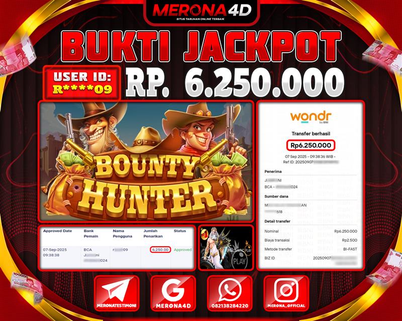 Selamat Kepada Member MERONA4D R*****9 Telah Jackpot Di BOUNTY HUNTER