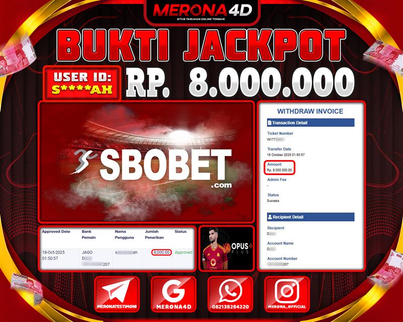 Selamat Kepada Member MERONA4D S*****AH Telah Jackpot Di SBOVIRTUALGAMES
