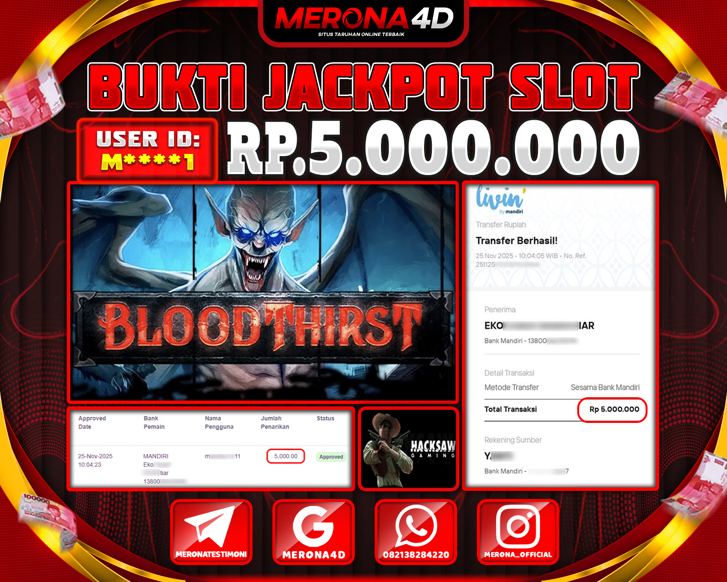 Selamat Kepada Member MERONA4D M****1 Telah Jackpot Di BLOODTHIRST