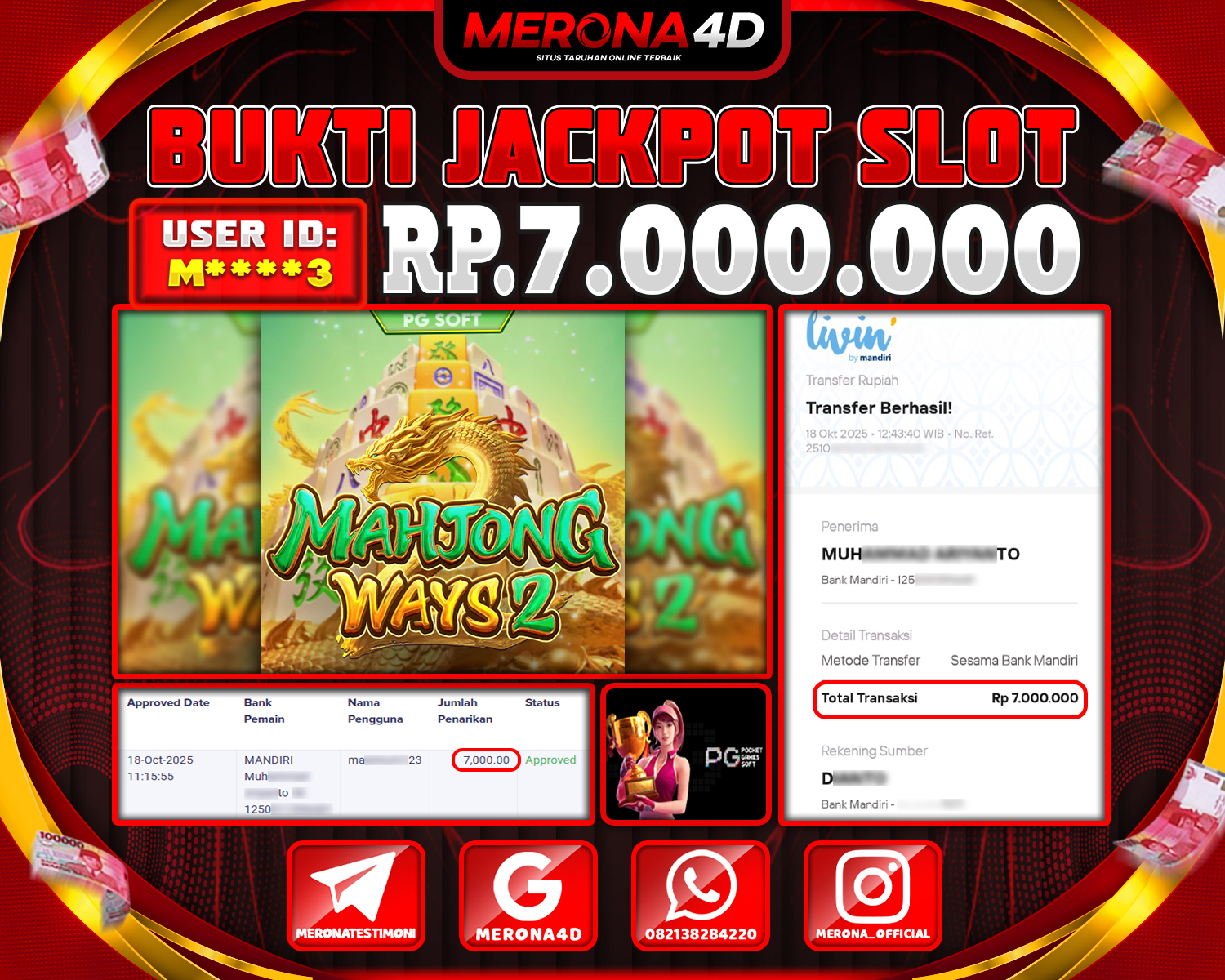 Selamat Kepada Member MERONA4D Mβ­‘οΏ½***οΏ½β­‘3 Telah Jackpot Di MAHJONG WAYS 2