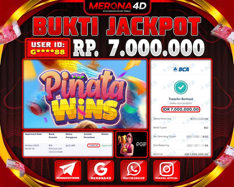 Selamat Kepada Member MERONA4D G*****88 Telah Jackpot Di PINATA WINS