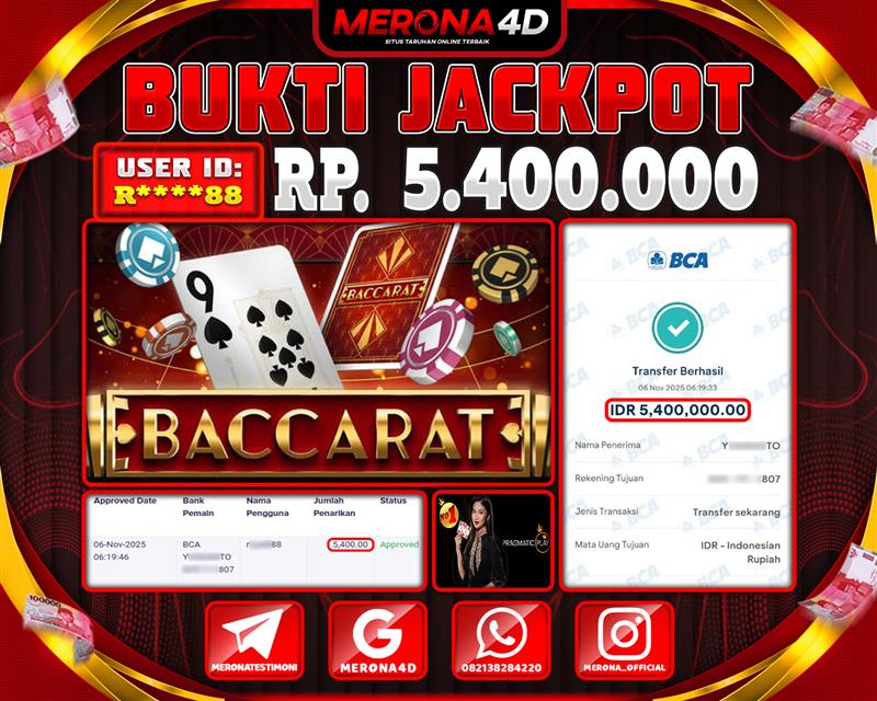 Selamat Kepada Member MERONA4D R*****88 Telah Jackpot Di BACCARAT