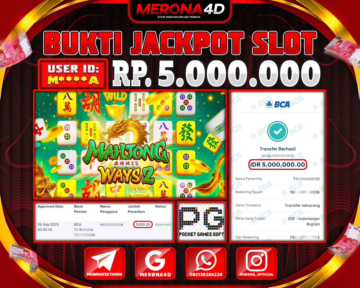 Selamat Kepada Member MERONA4D G****8 Telah Jackpot Di MAHJONG WAYS 2