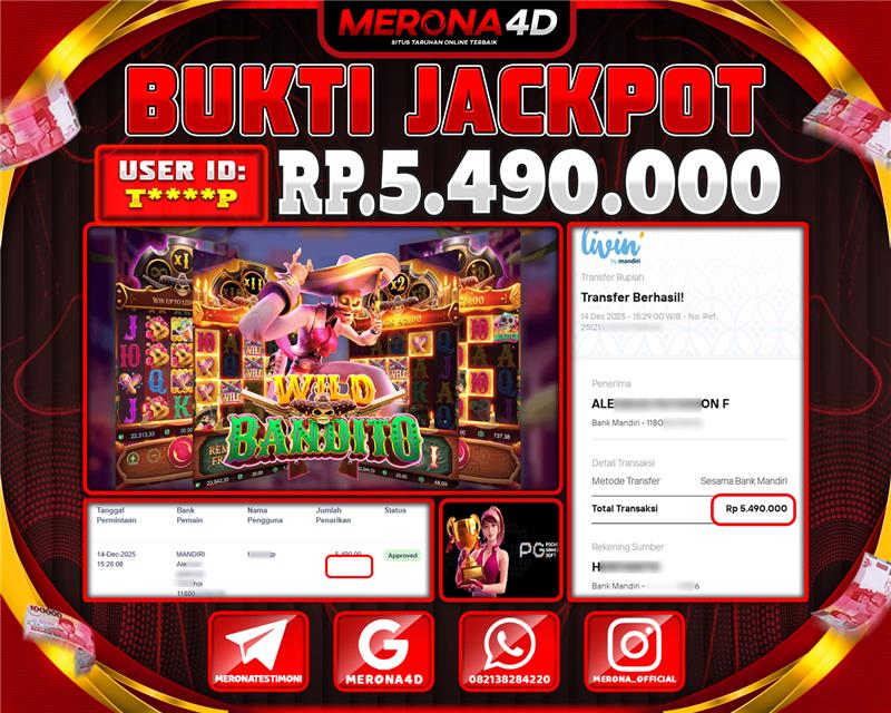 Selamat Kepada Member MERONA4D T*****P Telah Jackpot Di WILD BANDITO