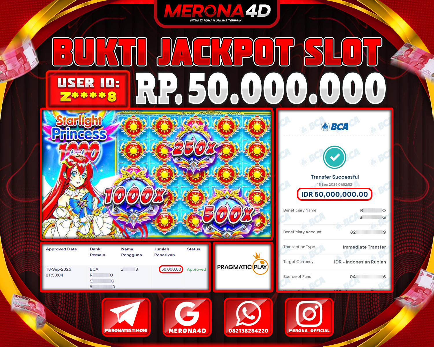 Selamat Kepada Member MERONA4D Z****8 Telah Jackpot Di STARLIGHT PRINCESS 1000
