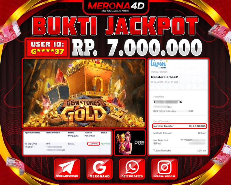 Selamat Kepada Member MERONA4D G*****37 Telah Jackpot Di GEMSTONES GOLD