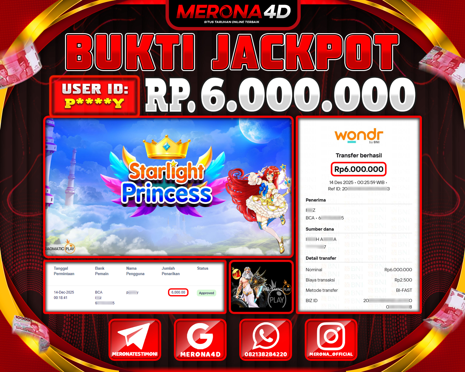 Selamat Kepada Member MERONA4D P****1 Telah Jackpot Di STARLIGHT PRINCESS 1000