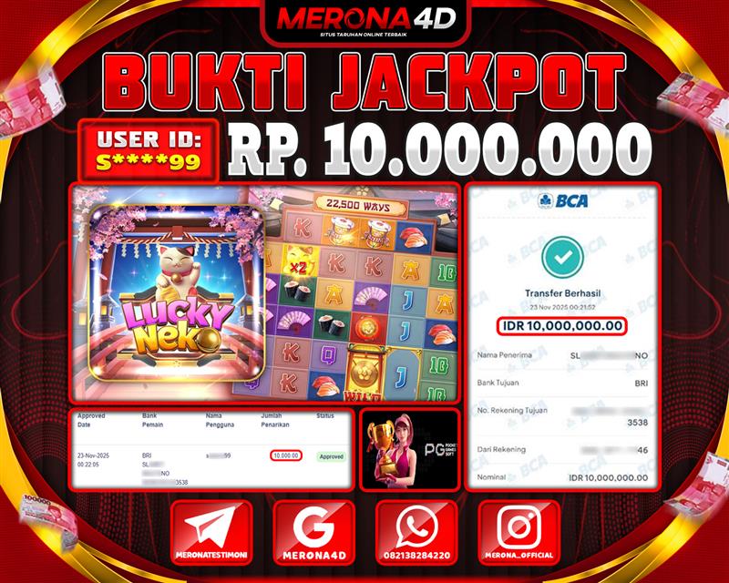 Selamat Kepada Member MERONA4D S*****99 Telah Jackpot Di LUCKY NEKO