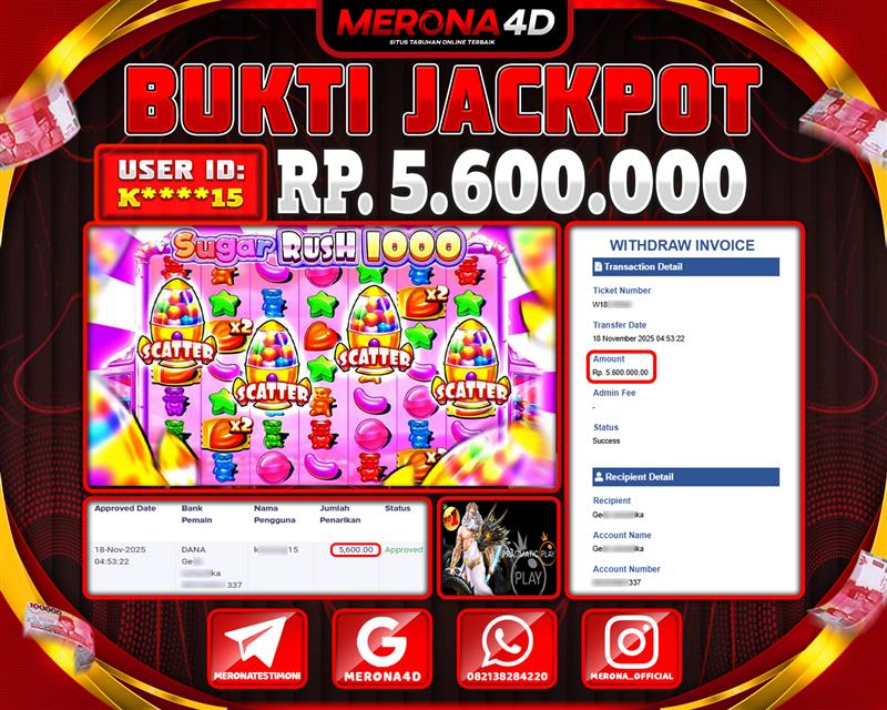 Selamat Kepada Member MERONA4D K*****15 Telah Jackpot Di SUGAR RUSH 1000