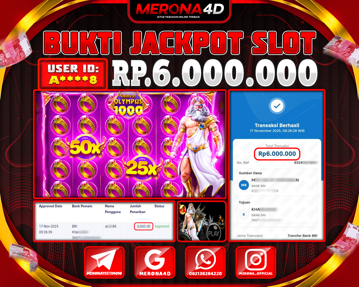 Selamat Kepada Member MERONA4D S****I Telah Jackpot Di GATES OF OLYMPUS 1000