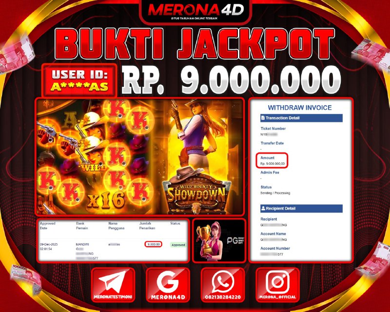 Selamat Kepada Member MERONA4D M****1 Telah Jackpot Di WILD BOUNTY SHOWDOWN