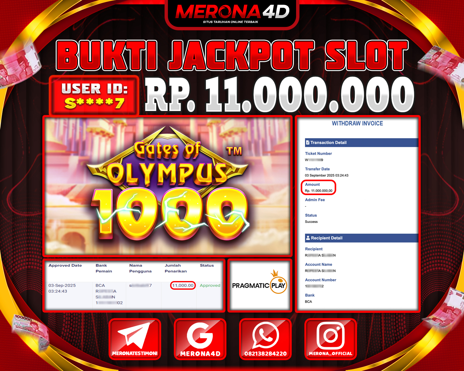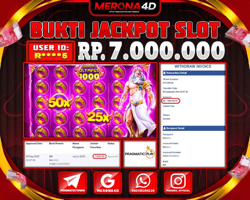 Selamat Kepada Member MERONA4D Rβ­‘οΏ½***οΏ½β­‘5 Telah Jackpot Di GATES OF OLYMPUS 1000
