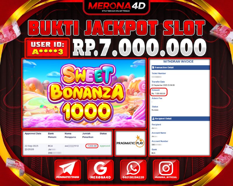 Selamat Kepada Member MERONA4D Aβ­‘οΏ½***οΏ½β­‘3 Telah Jackpot Di SWEET BONANZA 1000