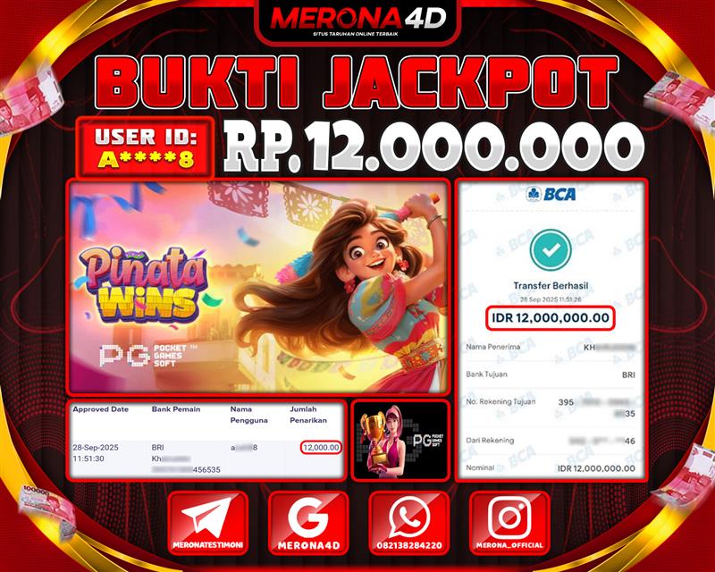 Selamat Kepada Member MERONA4D A****8 Telah Jackpot Di PINATA WINS