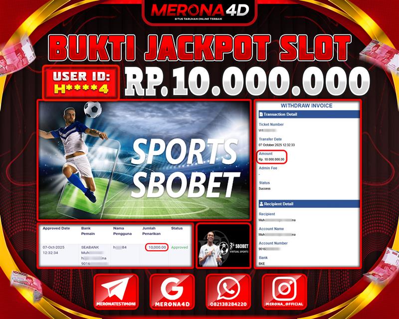 Selamat Kepada Member MERONA4D H****4 Telah Jackpot Di SBO SPORTS