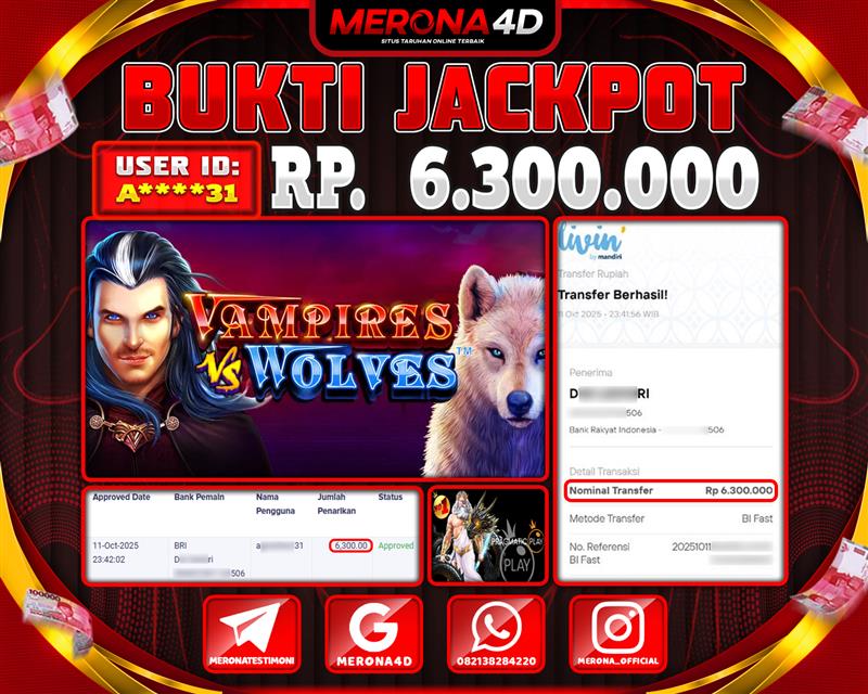Selamat Kepada Member MERONA4D A*****31 Telah Jackpot Di VAMPIRES VS WOLVES