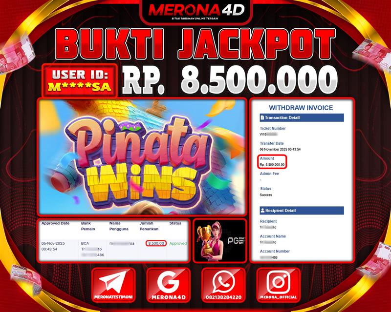 Selamat Kepada Member MERONA4D M*****SA Telah Jackpot Di PINATA WINS