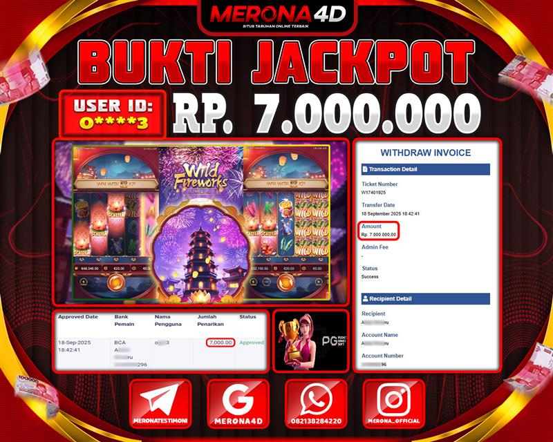 Selamat Kepada Member MERONA4D O****3 Telah Jackpot Di WILD FIREWORKS