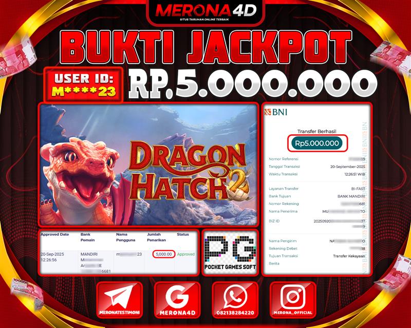 Selamat Kepada Member MERONA4D M*****3 Telah Jackpot Di DRAGON HATCH 2