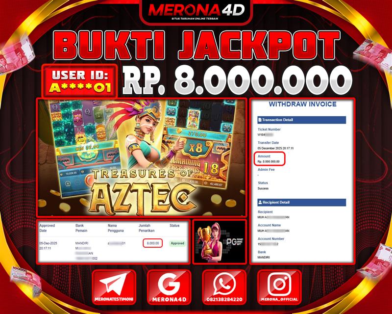 Selamat Kepada Member MERONA4D A*****01 Telah Jackpot Di TREASURE OF AZTEC