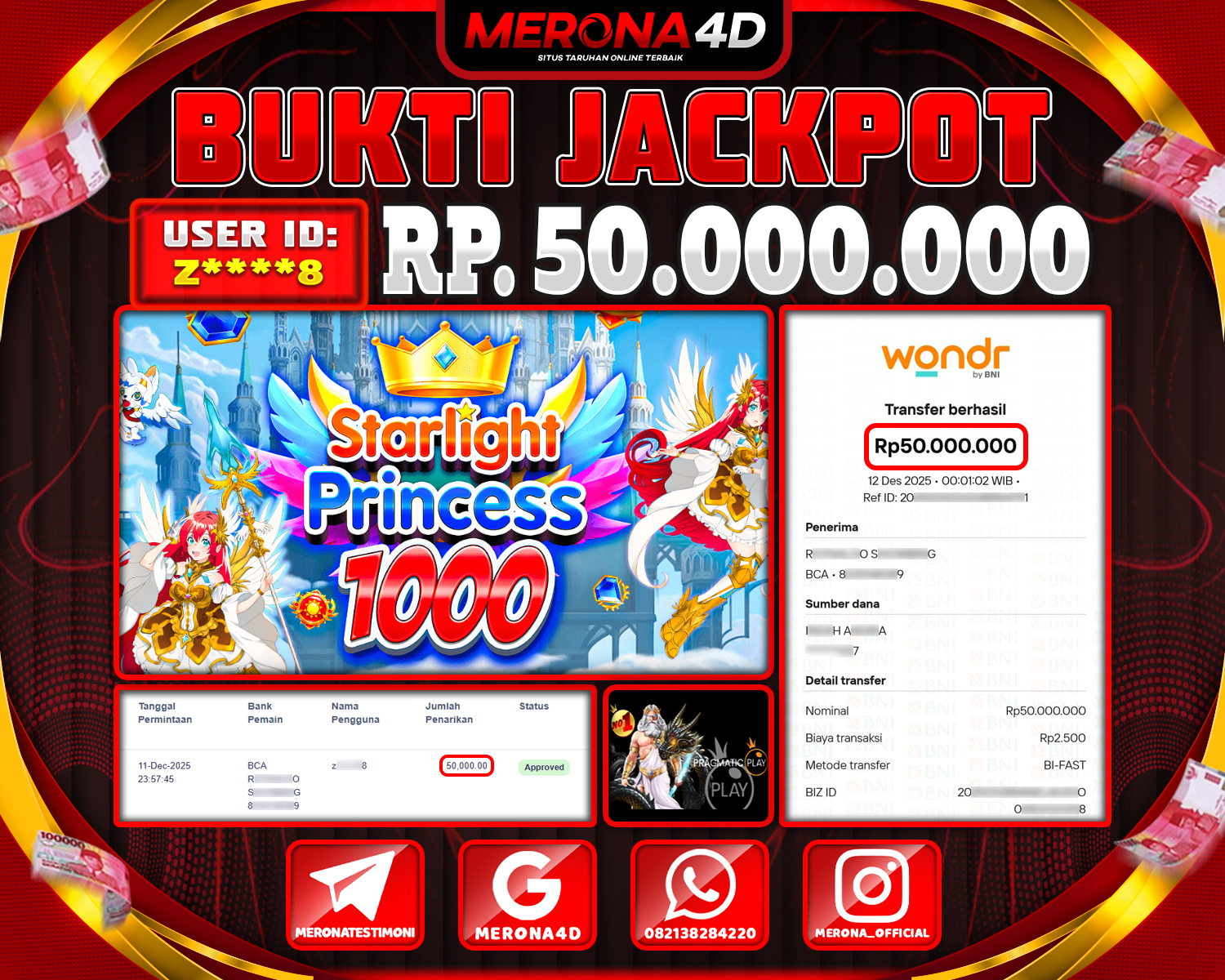 Selamat Kepada Member MERONA4D Z****8 Telah Jackpot Di STARLIGHT PRINCESS 1000