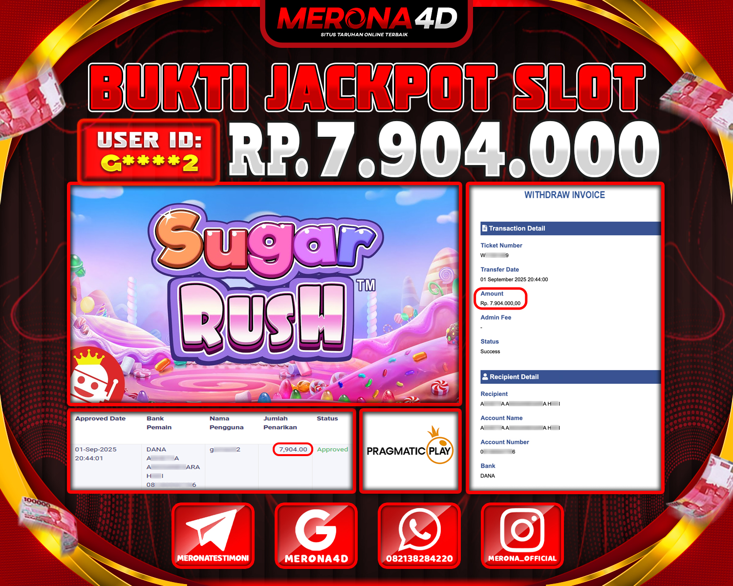 Selamat Kepada Member MERONA4D G****2 Telah Jackpot Di SUGAR RUSH