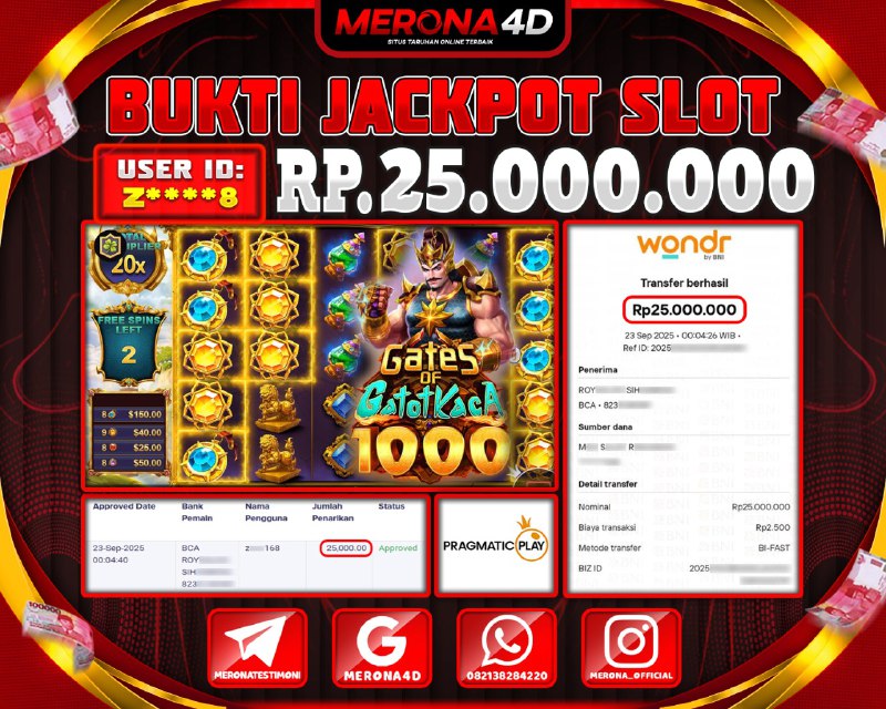 Selamat Kepada Member MERONA4D Zβ­‘οΏ½***οΏ½β­‘8 Telah Jackpot Di GATES OF GATOT KACA 1000