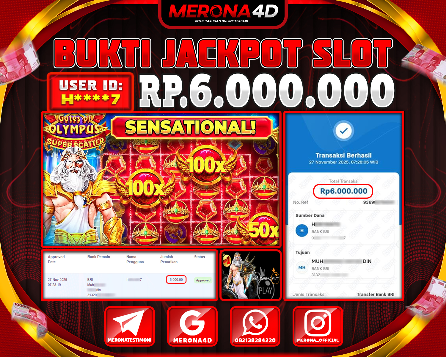 Selamat Kepada Member MERONA4D H****7 Telah Jackpot Di GATES OF OLYMPUS SUPER SCATTER