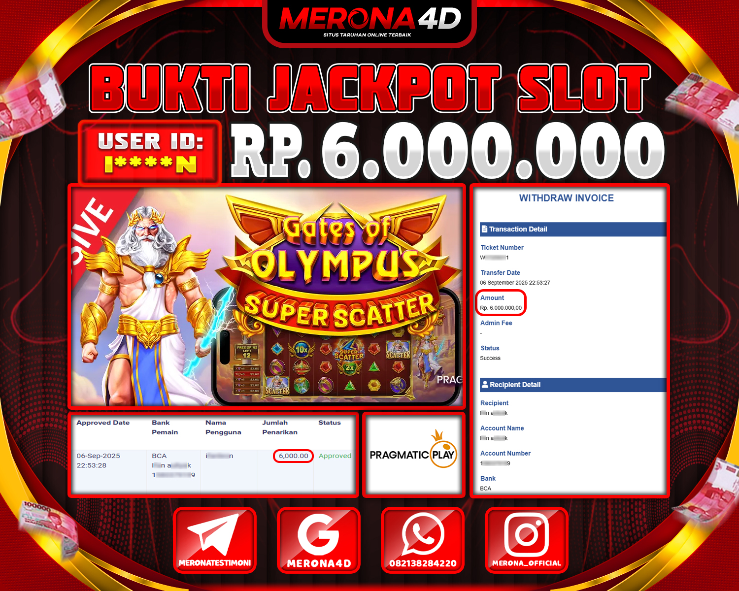 Selamat Kepada Member MERONA4D I****N Telah Jackpot Di GATES OF OLYMPUS SUPER SCATTER
