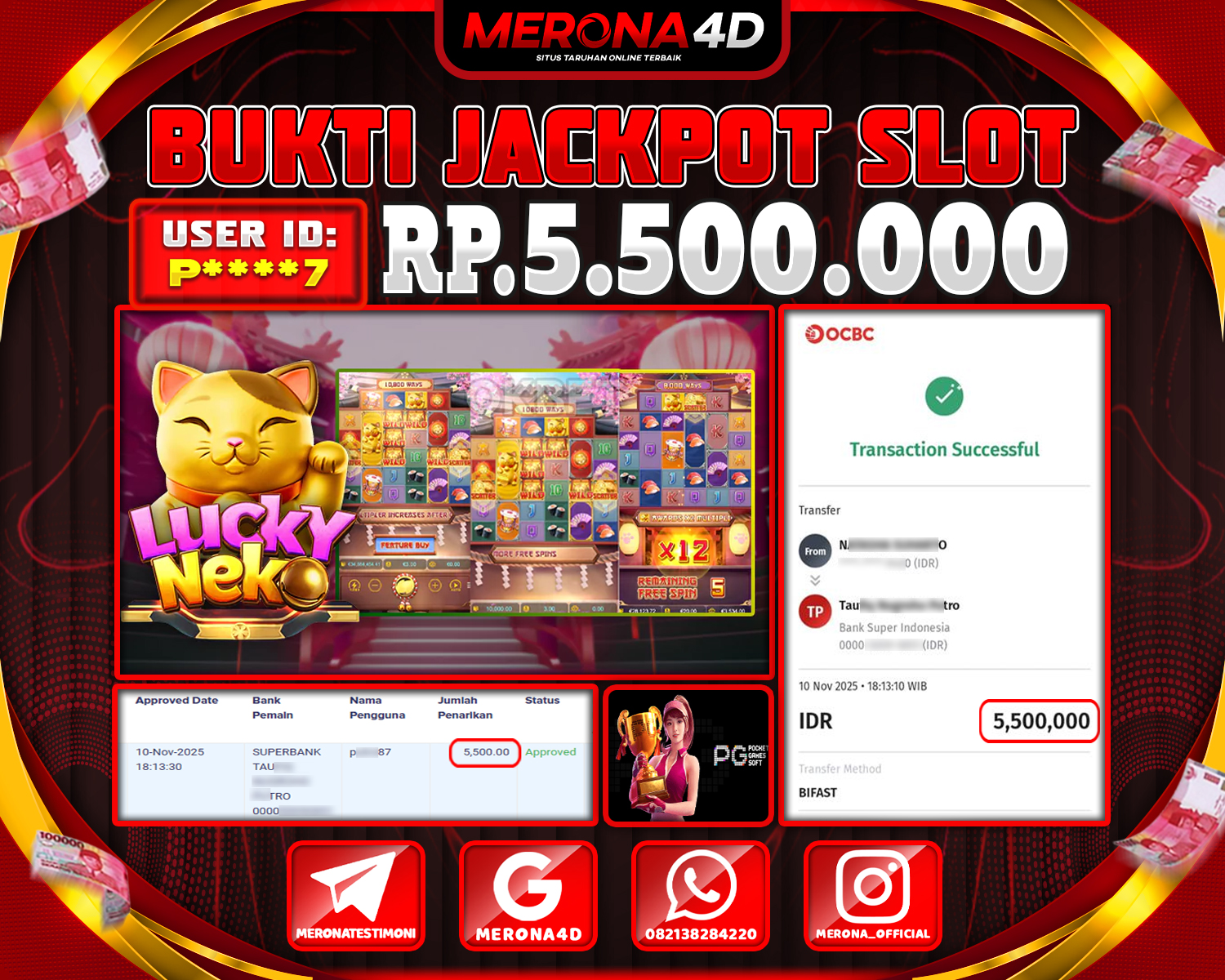 Selamat Kepada Member MERONA4D Pβ­‘οΏ½***οΏ½β­‘7 Telah Jackpot Di LUCKY NEKO