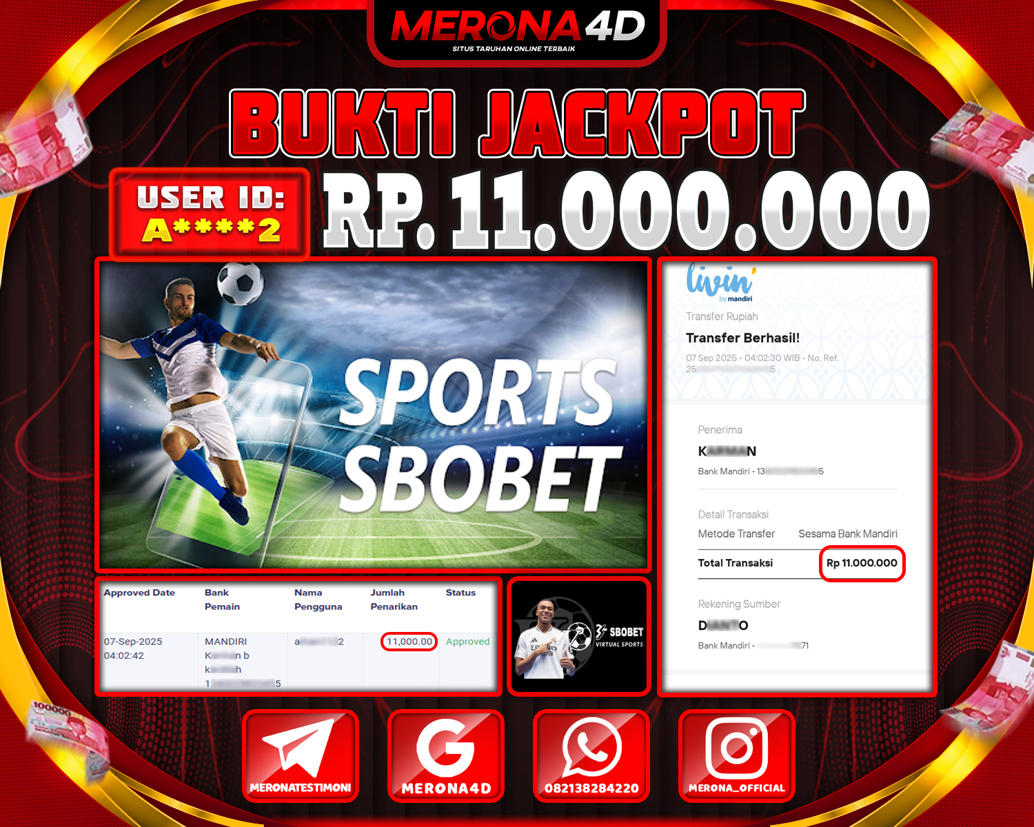 Selamat Kepada Member MERONA4D A****2 Telah Jackpot Di SBO SPORTS BOOK