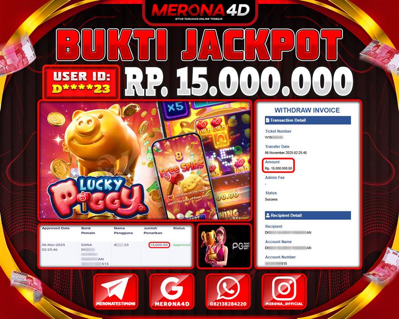 Selamat Kepada Member MERONA4D D*****23 Telah Jackpot Di LUCKY PIGGY