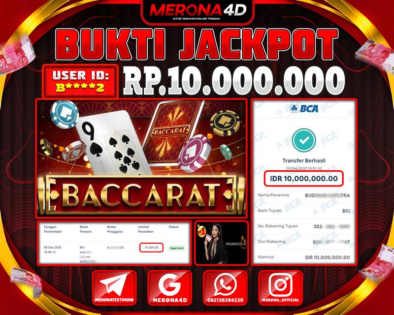 Selamat Kepada Member MERONA4D B*****2 Telah Jackpot Di BACCARAT