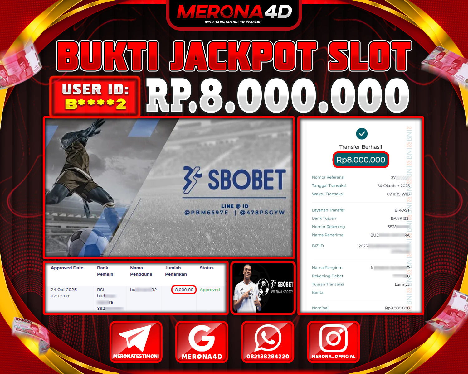 Selamat Kepada Member MERONA4D Sβ­‘οΏ½***οΏ½β­‘8 Telah Jackpot Di SBO SPORTS BOOK