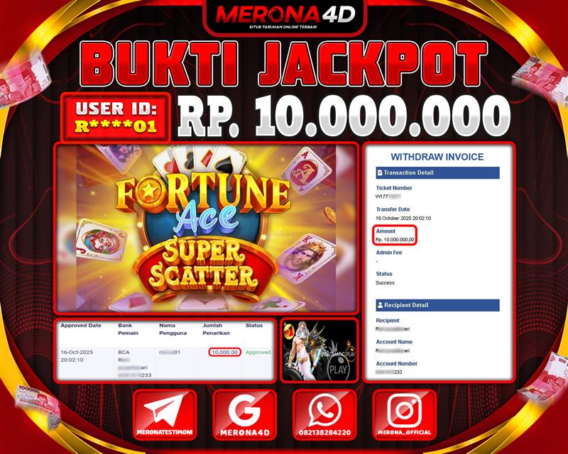 Selamat Kepada Member MERONA4D R******01 Telah Jackpot Di FORTUNE ACE SUPER SCATTER