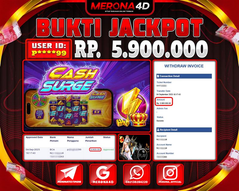 Selamat Kepada Member MERONA4D P*****99 Telah Jackpot Di CASH SURGE