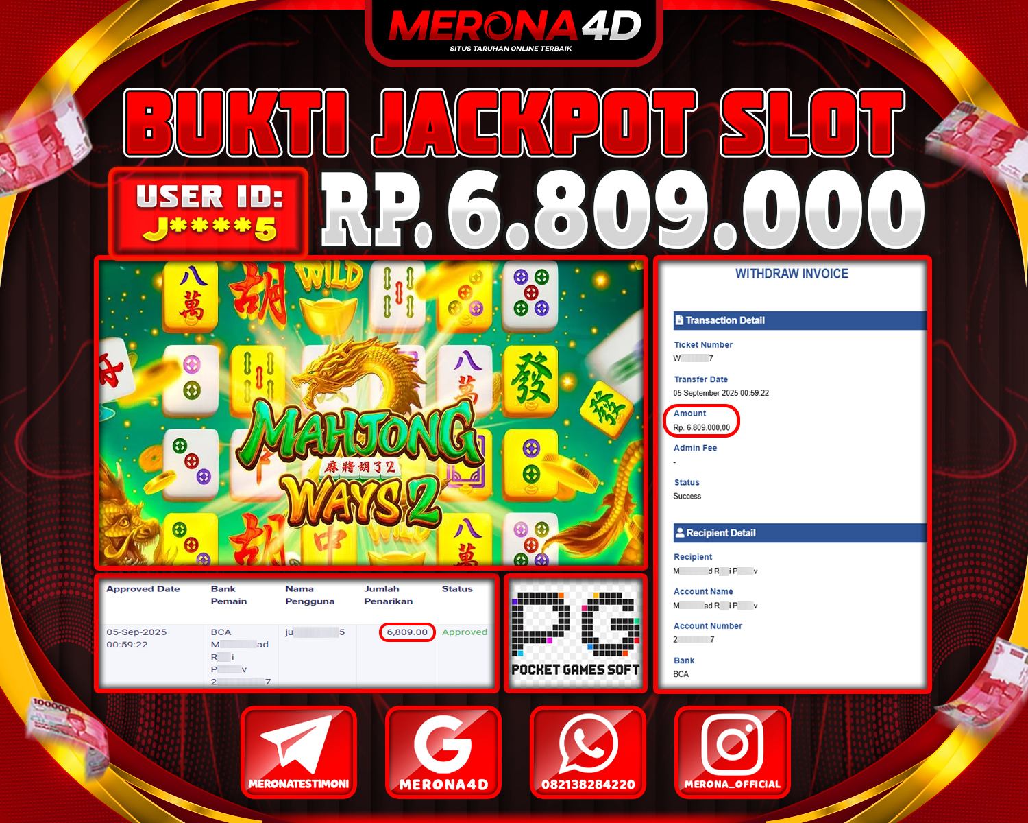 Selamat Kepada Member MERONA4D J****5 Telah Jackpot Di MAHJONG WAYS 2