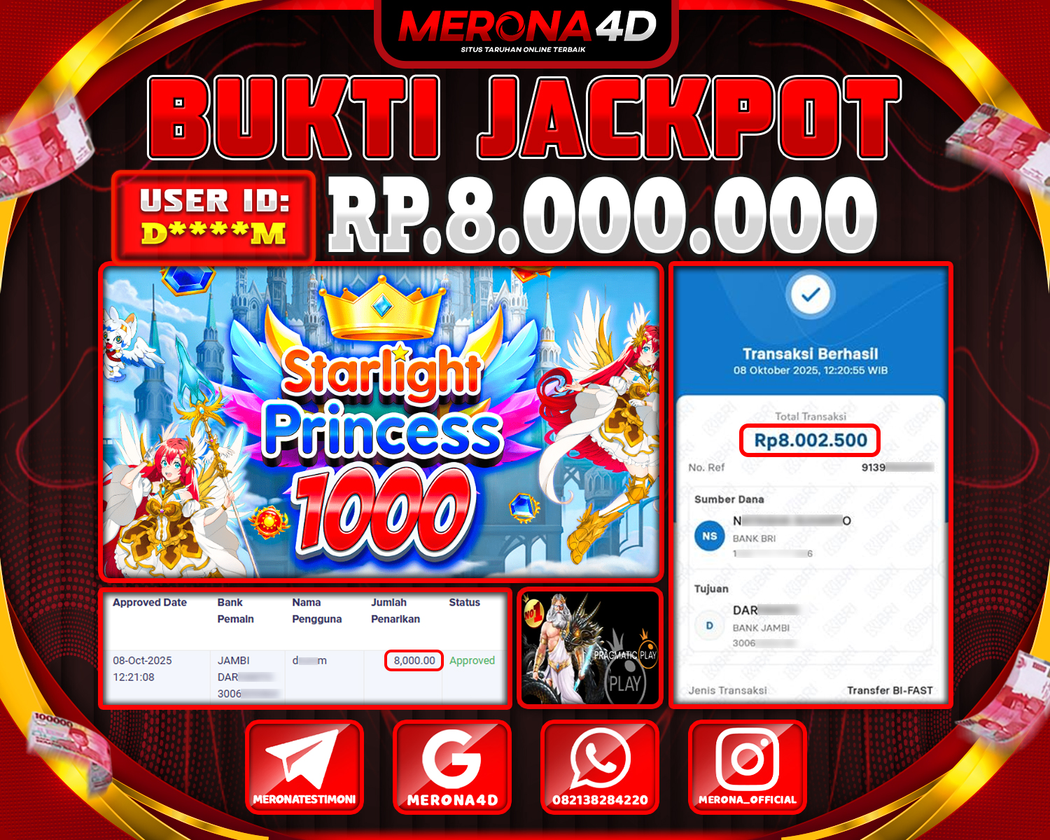 Selamat Kepada Member MERONA4D Dβ­‘οΏ½***οΏ½β­‘M Telah Jackpot Di STARLIGHT PRINCESS 1000