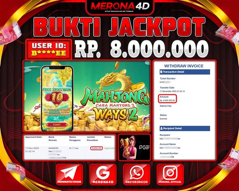 Selamat Kepada Member MERONA4D B*****EE Telah Jackpot Di MAHJONG WAYS 2