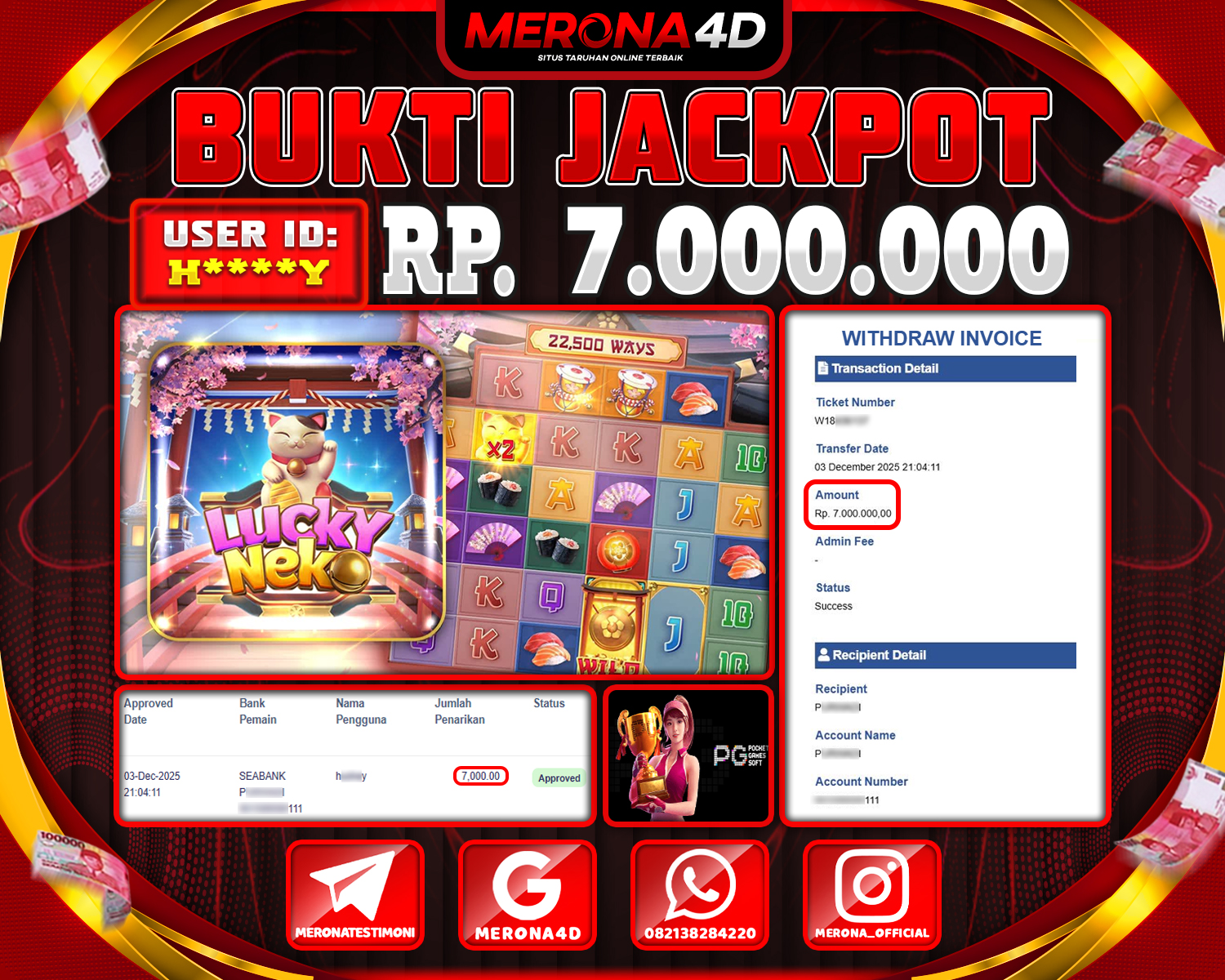 Selamat Kepada Member MERONA4D H****Y Telah Jackpot Di LUCKY NEKO