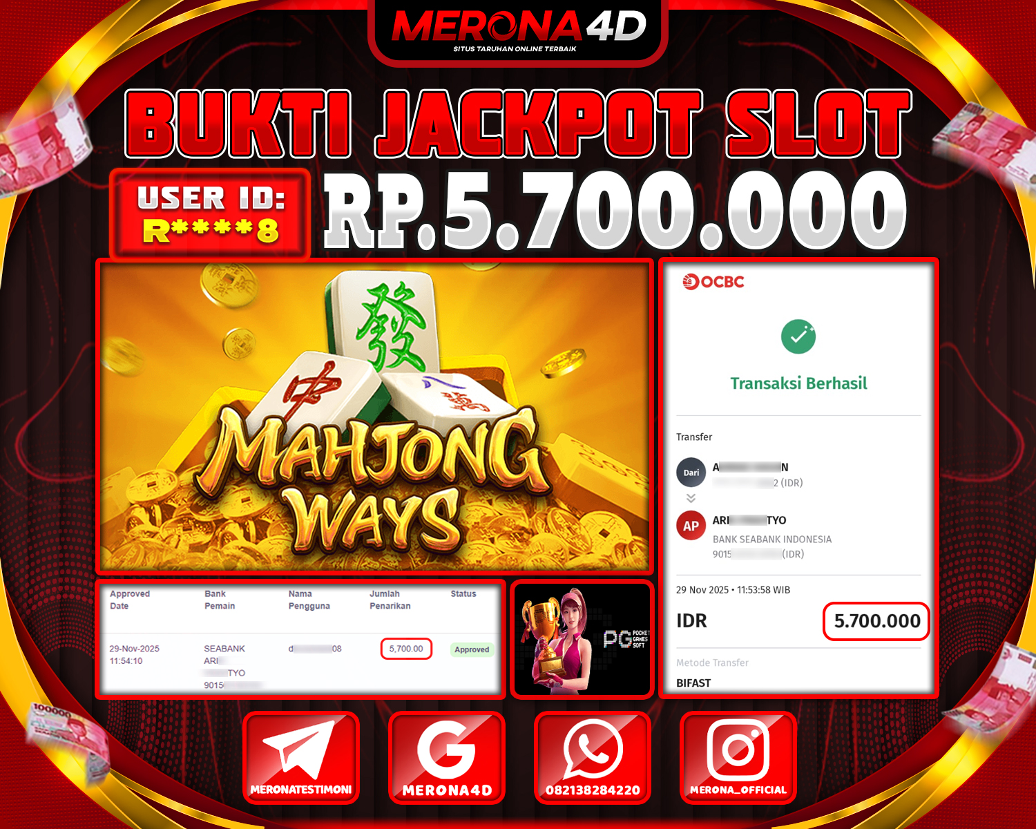 Selamat Kepada Member MERONA4D R****8 Telah Jackpot Di MAHJONG WAYS