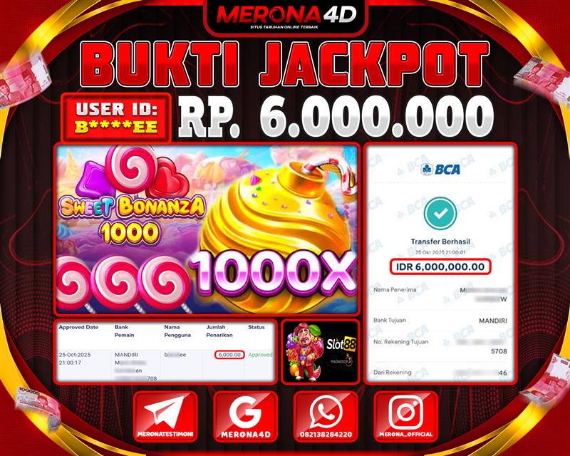 Selamat Kepada Member MERONA4D B*****EE Telah Jackpot Di SLOT88 SWEET BONANZA 1000