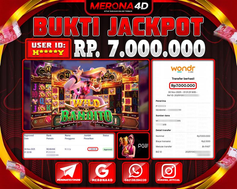 Selamat Kepada Member MERONA4D H*****Y Telah Jackpot Di WILD BANDITO