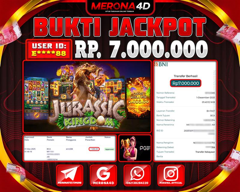 Selamat Kepada Member MERONA4D E*****88 Telah Jackpot Di JURASSIC KINGDOM