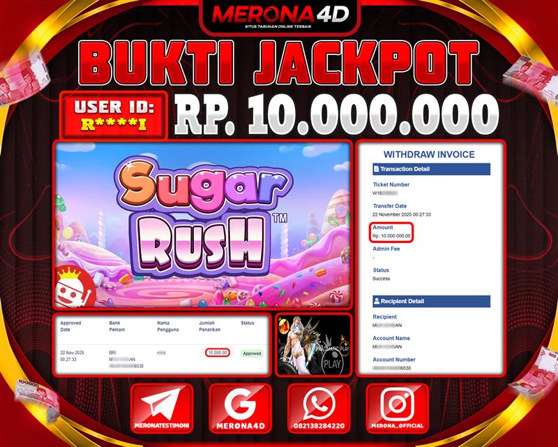 Selamat Kepada Member MERONA4D R*****I Telah Jackpot Di SUGAR RUSH 1000