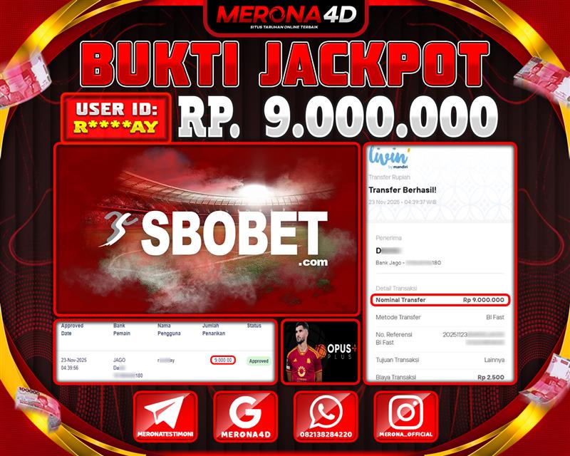 Dari Liga Champions hingga NBA, serta turnamen e-sports favorit seperti Mobile Legends dan Dota 2, MERONA4D menawarkan sportsbook lengkap dengan odds kompetitif dan sistem livescore real-time. Taruhan jadi lebih seru dan transparan!