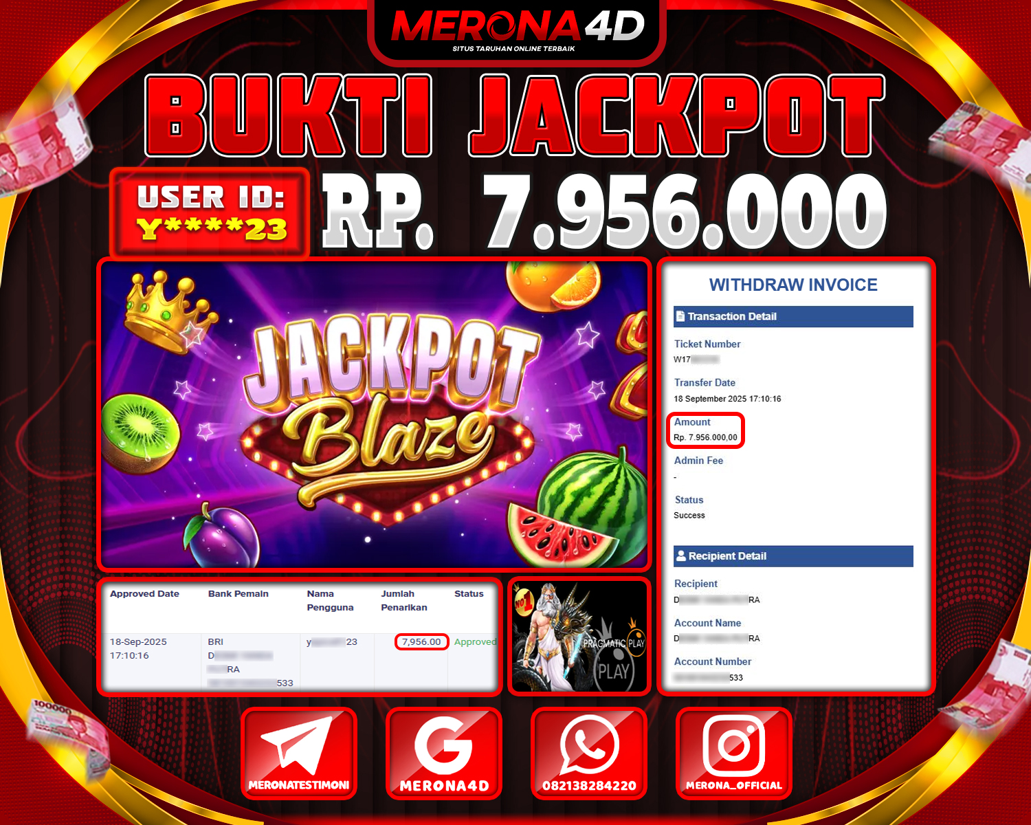 Selamat Kepada Member MERONA4D Y*****3 Telah Jackpot Di JACKPOT BLAZE