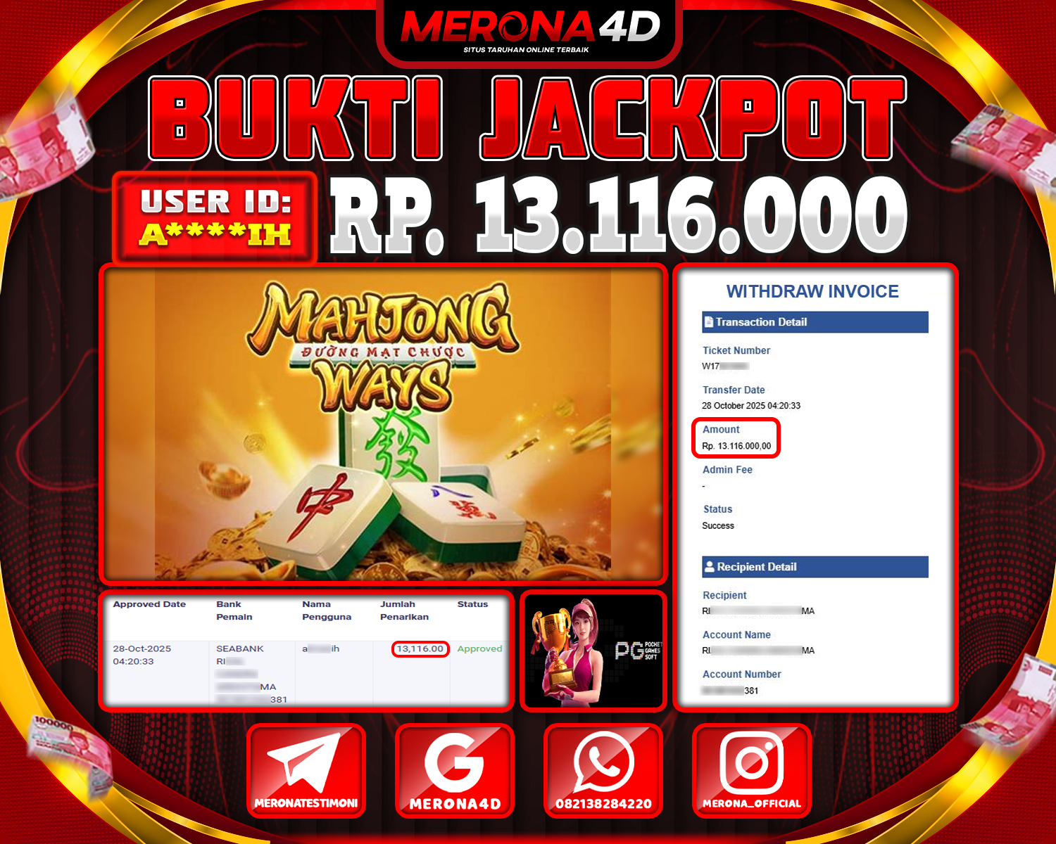 Selamat Kepada Member MERONA4D A*****IH Telah Jackpot Di MAHJONG WAYS