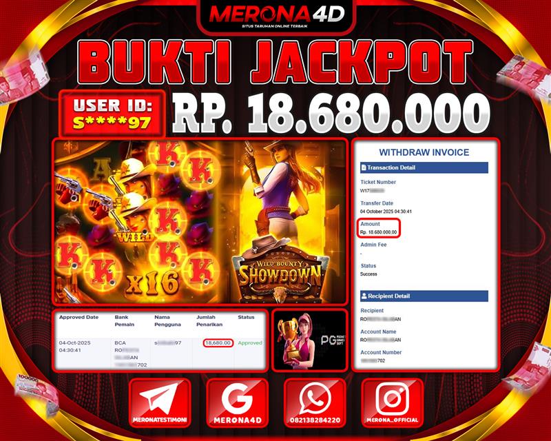 Selamat Kepada Member MERONA4D S*****97 Telah Jackpot Di WILD BOUNTY SHOWDOWN